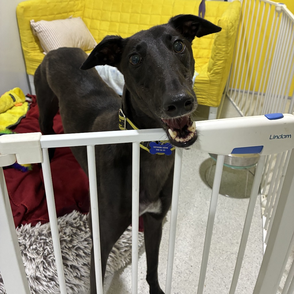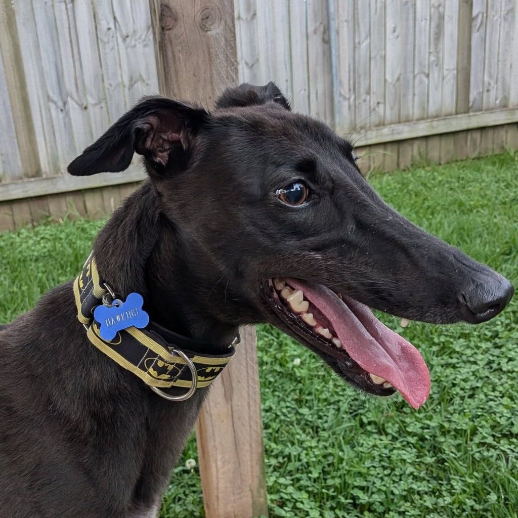 Hi there! I’m Hawkins — yes, like the town from Stranger Things. No Demogorgons here though… just me, a small, bouncy greyhound with a very big heart.